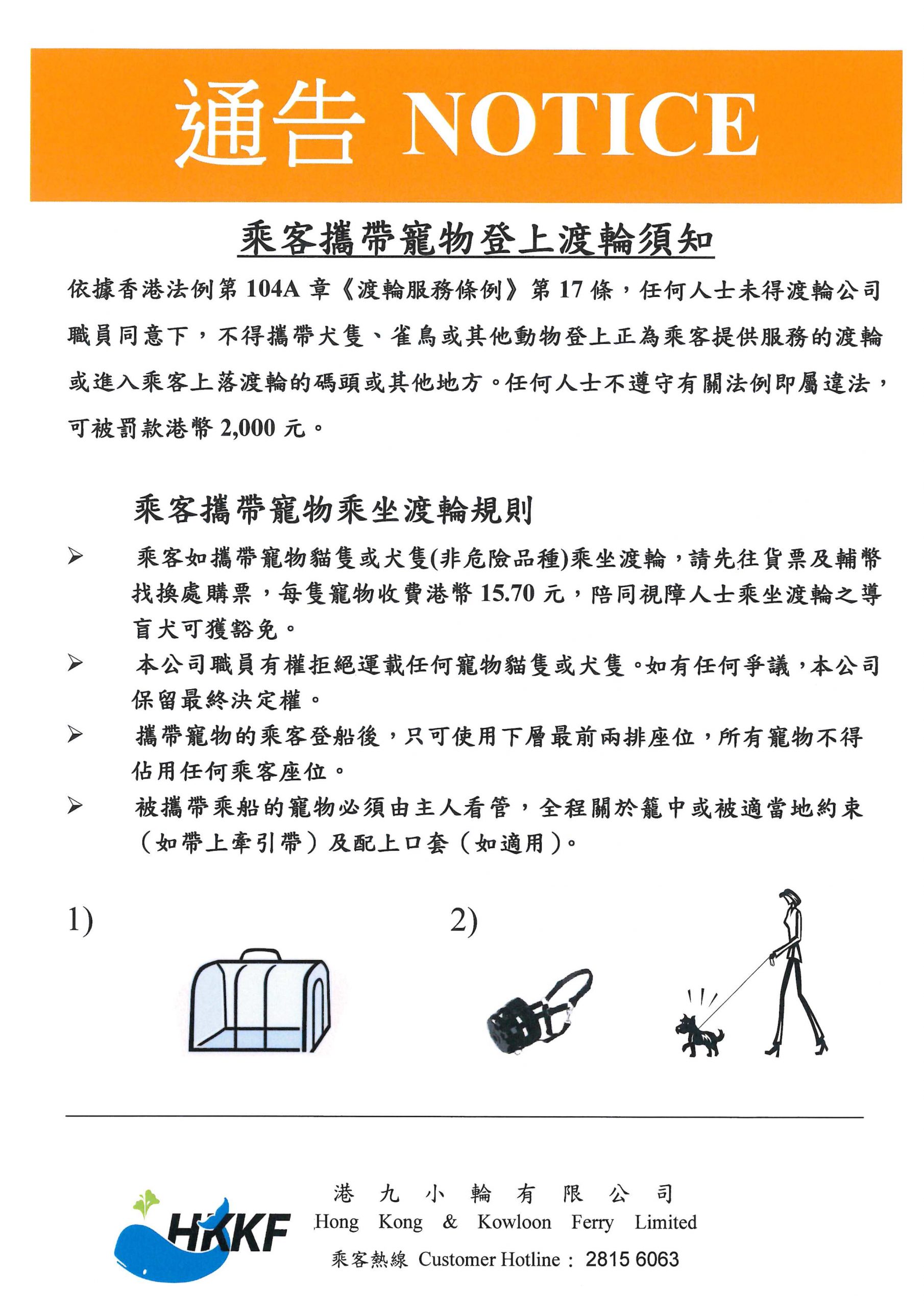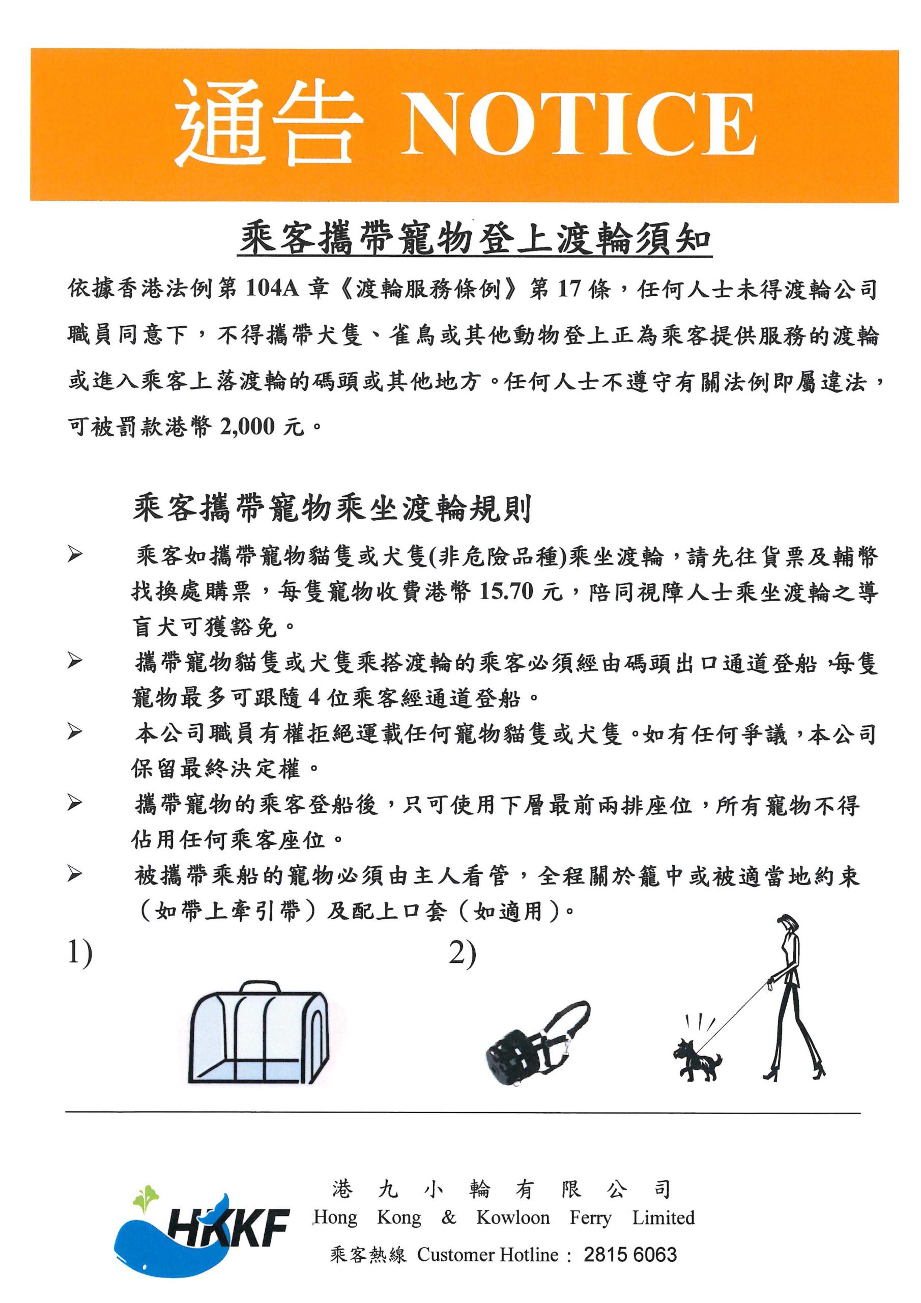 7. 如欲運載任何存活的動物(包括但不限於鳥類、爬蟲類、昆蟲,不論是否寵物),乘客須先獲本公司職員准許,且必須(i)妥善關進籠或容器內,或(ii)被適當地約束(例如用帶牽引)及配上口罩(如適用);