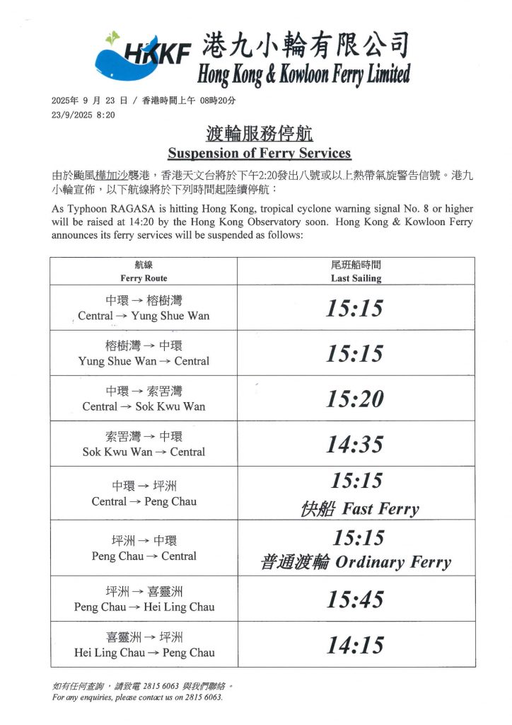 台风停航通告 (桦加沙)